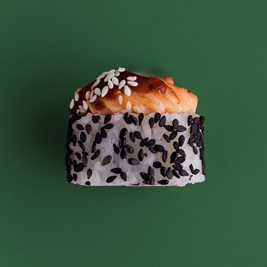 Состав: мидии салатные, сливочный сыр, спайси соус, унаги соус, кунжут.