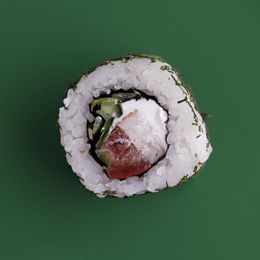 Состав: снежный краб, сливочный сыр, огурец, спайси соус, укроп.