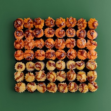 Филадельфия в темпуре, Калифорния в темпуре, Запеченые острые суши крабом (2 шт.), Запечен...